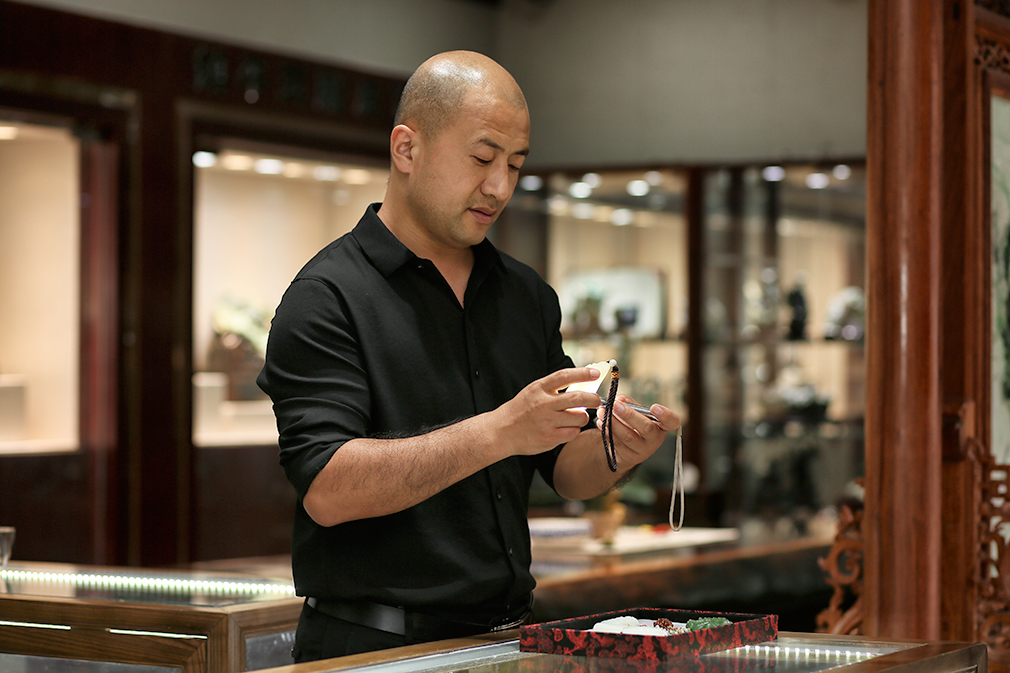 前几年的时候,网购不像现在那么普遍,苦于没有很好的购玉渠道,何军老师都是在商场里购买玉石,往往价格居高且品质一般,淘不到心仪的宝贝。在一次偶然的机会下,何军老师跟同是喜爱和田玉的好友抱怨这件事,好友听后哈哈大笑,说他人傻钱多,居然敢去商场买“天价玉”,于是把宋掌柜引荐给何军老师。通过与宋掌柜的沟通交流,何军老师了解到和田玉的真实价格,以及许多相关知识,并委托宋掌柜为自己订制一枚和田玉吊坠。